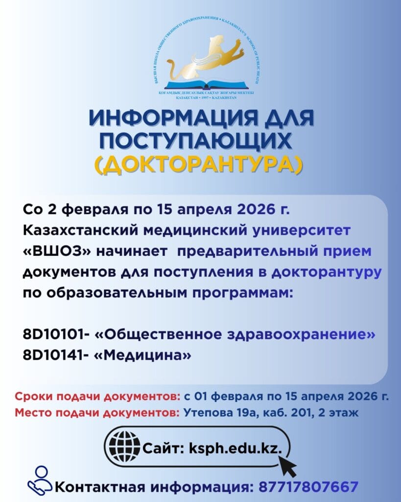 Казахстанский медицинский университет «ВШОЗ» – лидер в подготовке и непрерывном профессиональном развитии, повышении квалификации специалистов общественного здравоохранения, менеджеров и специалистов клинического профиля, проведении аналитических, экспертных исследований в области охраны здоровья населения и развития отрасли.