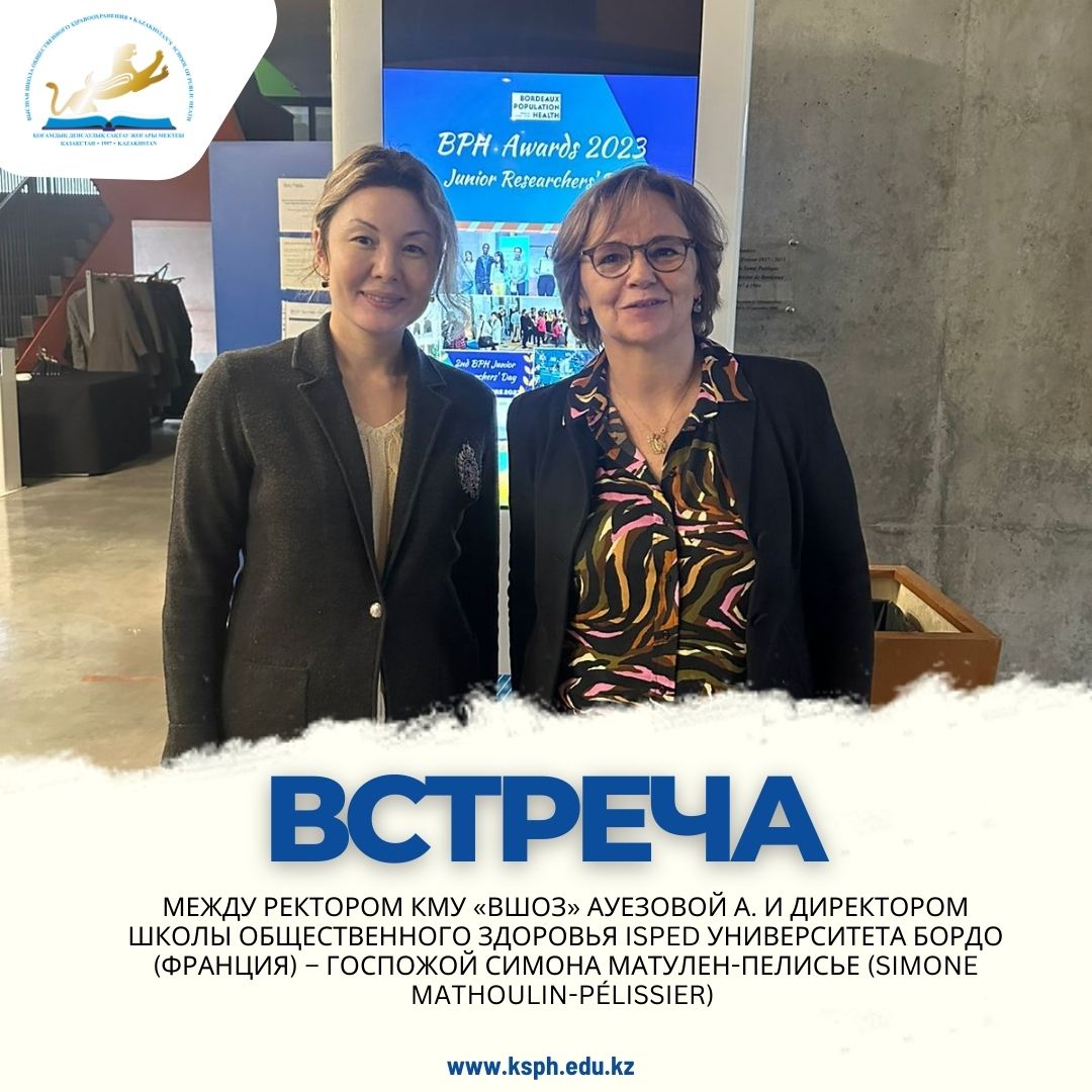 24 ноября 2023 года состоялась встреча между ректором КМУ «ВШОЗ» Ауезовой А. и директором Школы общественного здоровья ISPED университета Бордо (Франция) – госпожой Симона Матулен-Пелисье (SIMONE MATHOULIN-PÉLISSIER). В ходе встречи руководители обсудили вопросы взаимовыгодного сотрудничества в сфере образования и науки. Ректор КМУ «ВШОЗ» отметила, что деятельность университета направлена на углубление эффективных возможностей подготовки специалистов в рамках международного сотрудничества. В целях…