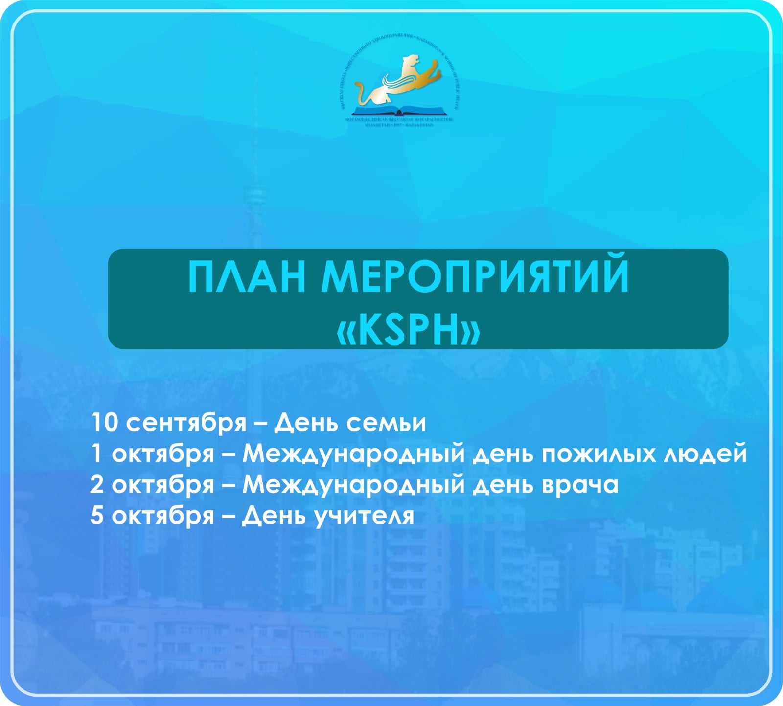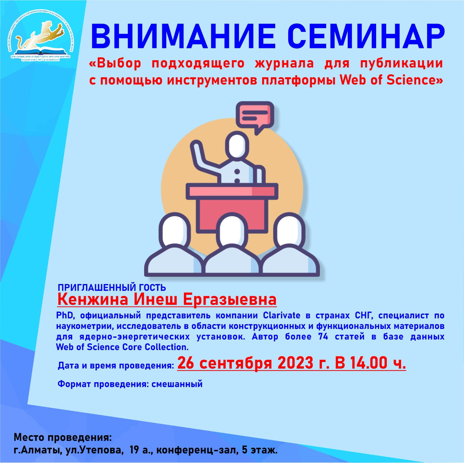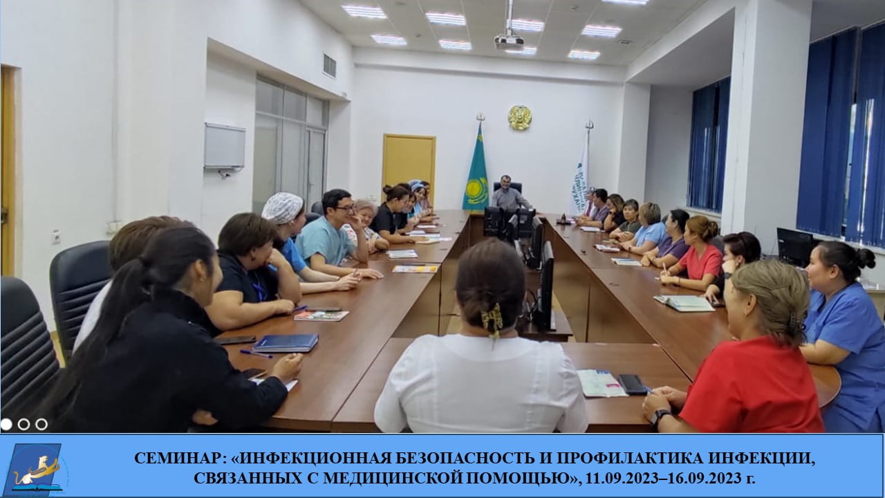В г. Алматы в период с 11.09.–16.09.2023 г. кафедрой «Общественного здоровья и социальных наук» КМУ «ВШОЗ» под руководством заведующей кафедрой, Заслуженного деятеля науки РК, профессора Рыскуловой А. Р. организован семинар средних медицинских работников ЦГБ №4. На семинаре рассматривались актуальные вопросы на тему: «Инфекционная безопасность и профилактика инфекции, связанных с медицинской помощью». Занятие проходило на базе клинической базы медицинской организации, где изучали…