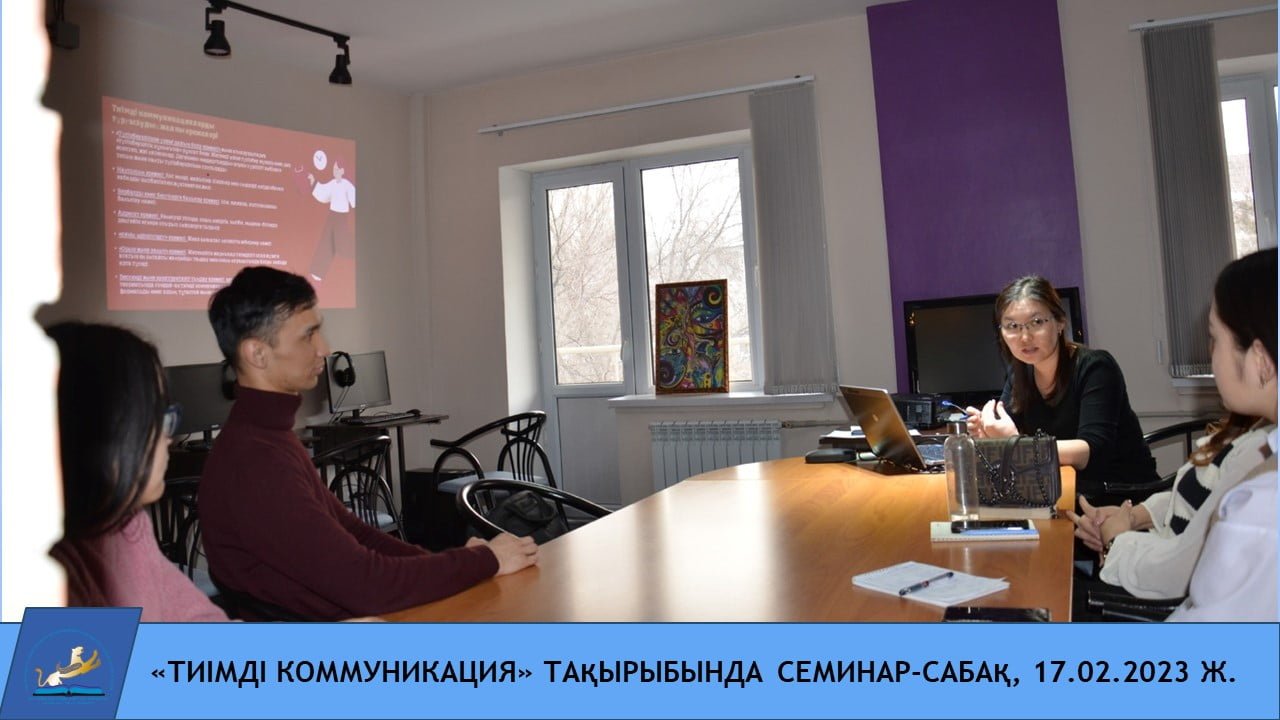 17 февраля текущего года в коворкинге старший преподаватель кафедры «Менеджмент здравоохранения» Нарымбаева Назерке Нурмагамбетовна провела семинар-занятие со студентами 1 курса специальности «Медико-профилактическое дело» на тему «Эффективная коммуникация». В ходе урока были озвучены этапы и возникающие барьеры коммуникативного процесса. Обучающиеся выполнили различные практические задания и приобрели навыки эффективного общения.
