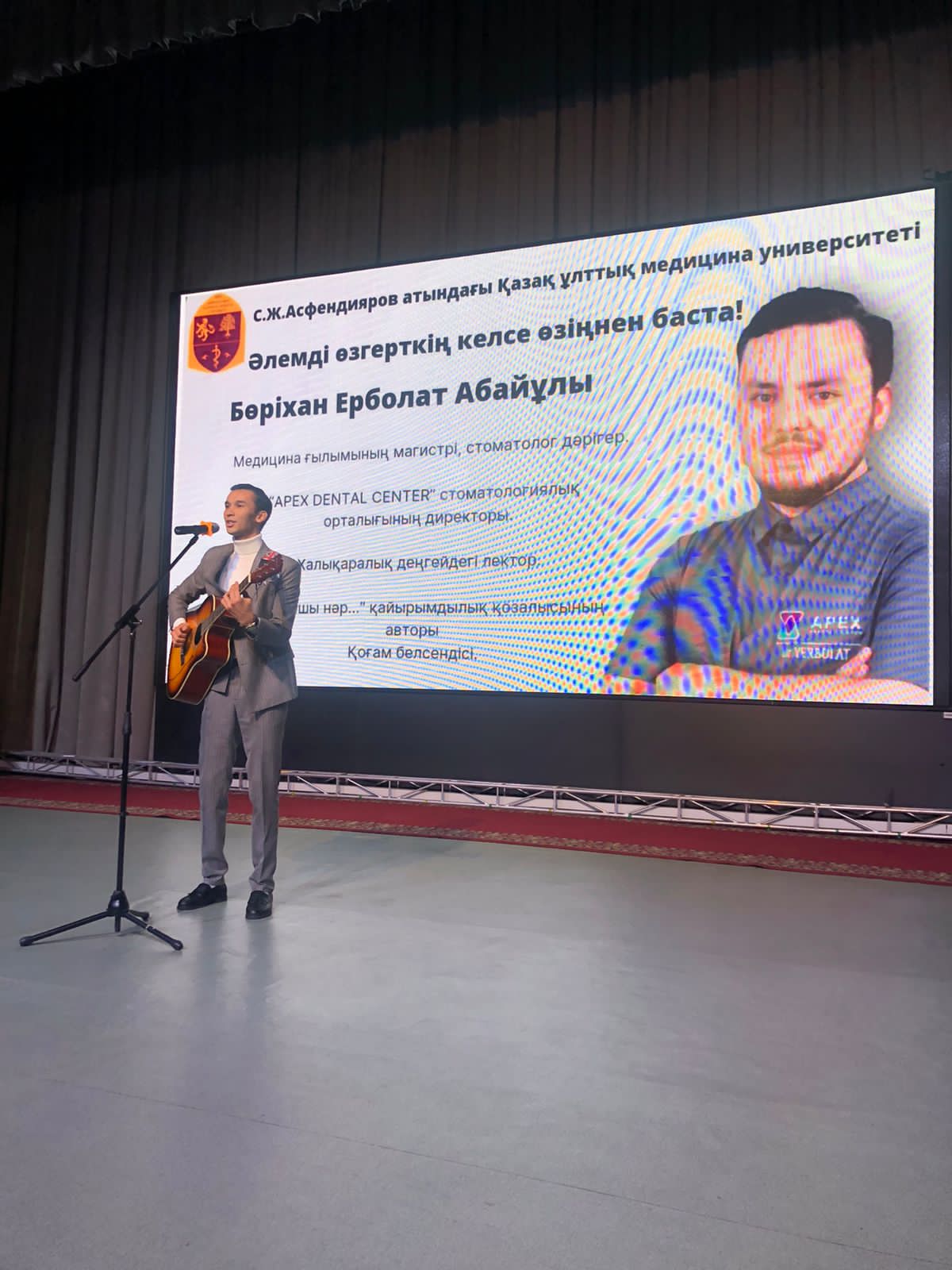 17 ноября 2022 на базе КазНМУ имени С.Д Асфендиярова совместно с Казахстанским медицинским университетом "ВШОЗ" и Казахстанско-Российским медицинским университетом прошло мероприятие в честь международного дня студента. Выступал магистр медицинских наук, врач-стоматолог - Борехан Ерболат,который поделился своей историей успеха. В конце была небольшая праздничная программа с участием обучающихся университетов, где с успехом выступил наш магистрант 1 года обучения Раушан Айбек.