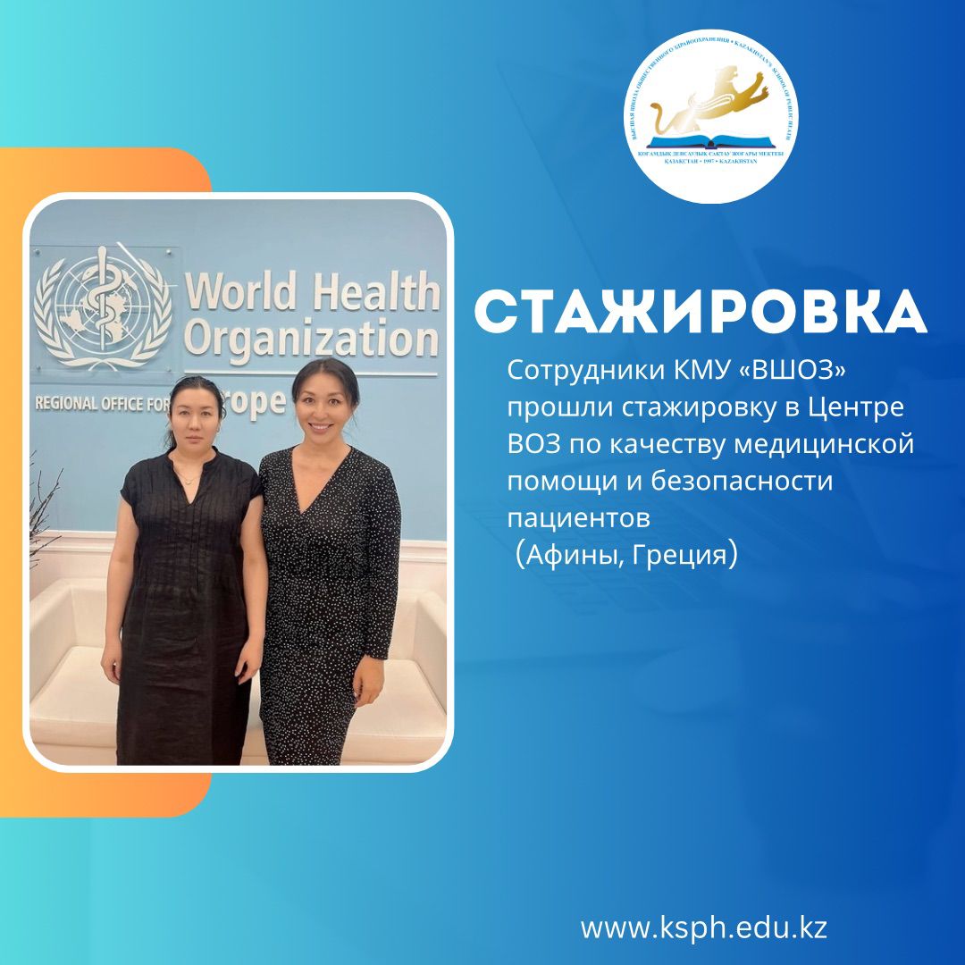 From June 10 to 22, 2024, employees of the Department of International Affairs of the Kazakhstan’s Medical University "KSPH" Sarsembayeva D. and Minzhassarova K. completed internship at the WHO Office for Quality of Medical care and patient Safety in Athens. The purpose of the internship is the implementation of common projects, the preparation of roadmaps, the exchange of experience, the…