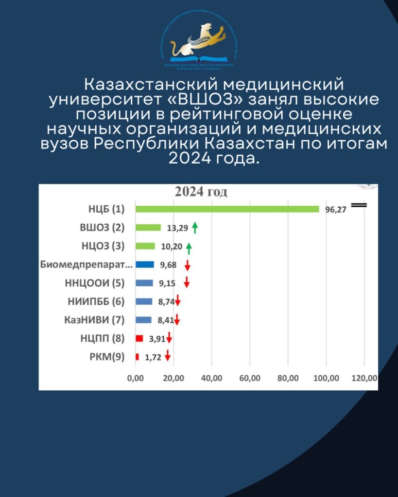Казахстанский медицинский университет «ВШОЗ» занял высокие позиции в рейтинговой оценке научных организаций и медицинских вузов Республики Казахстан по итогам 2024 года.