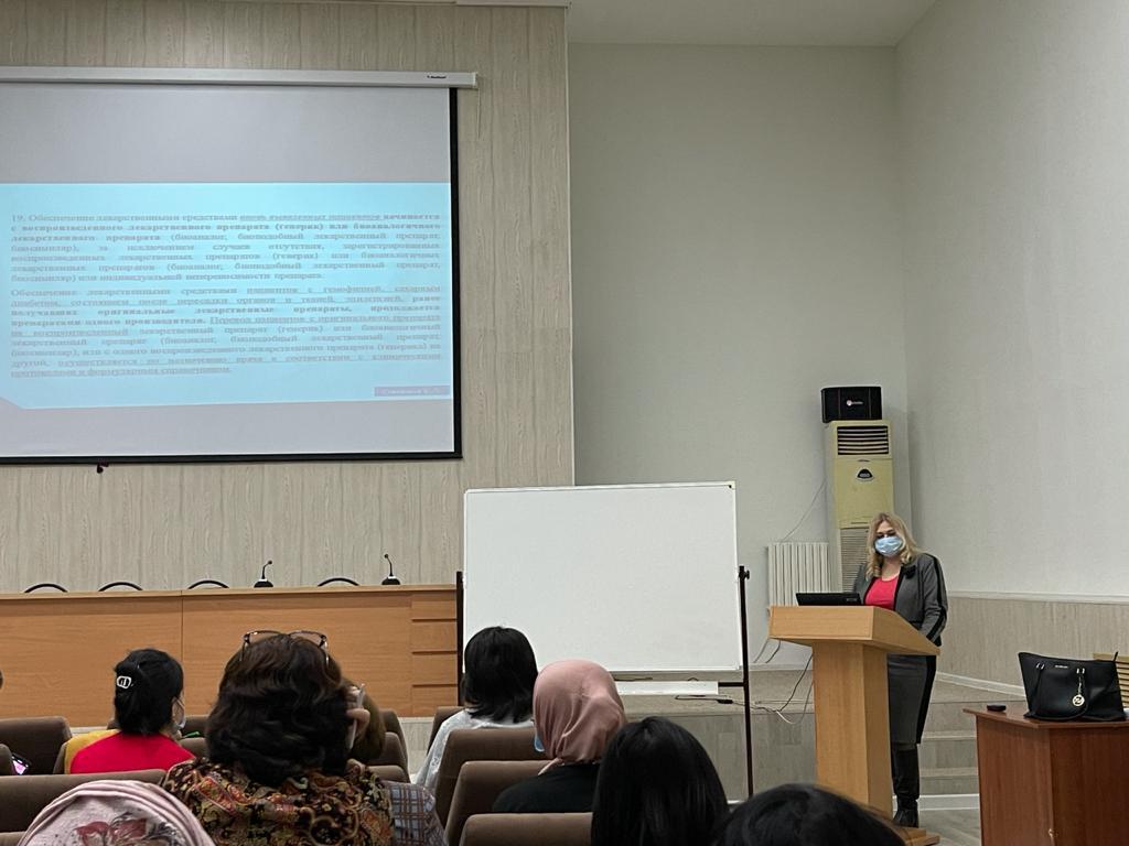 С 6 по 11 декабря 2021 года проректор по развитию Казахстанского медицинского университета «ВШОЗ», к.фарм.н. Степкина Елена Леонидовна провела обучение медицинских и фармацевтических работников организаций здравоохранения Атырауской области по теме «Управление обращением лекарственных средств и медицинских изделий в организациях здравоохранения».