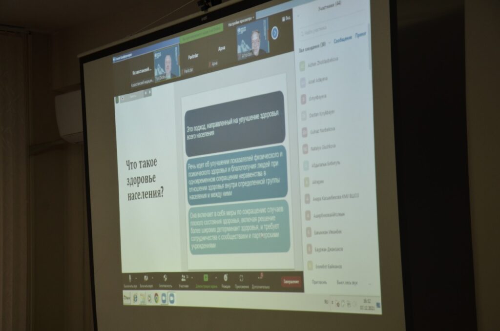 7 декабря текущего года состоялся очередной вебинар с участием зарубежного и казахстанских спикеров в рамках мероприятий, посвященных 25-летию подписания Соглашения между Европейским Региональным Бюро ВОЗ и Министерством Здравоохранения Республики Казахстан, трехлетию подписания Астанинской декларации, 30-летию Независимости Республики Казахстан.